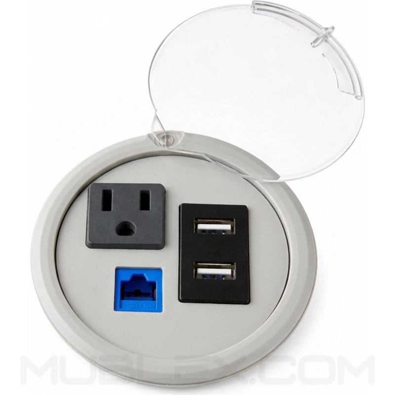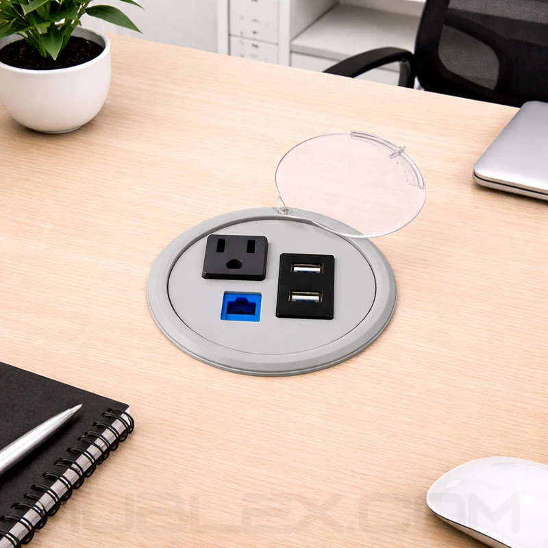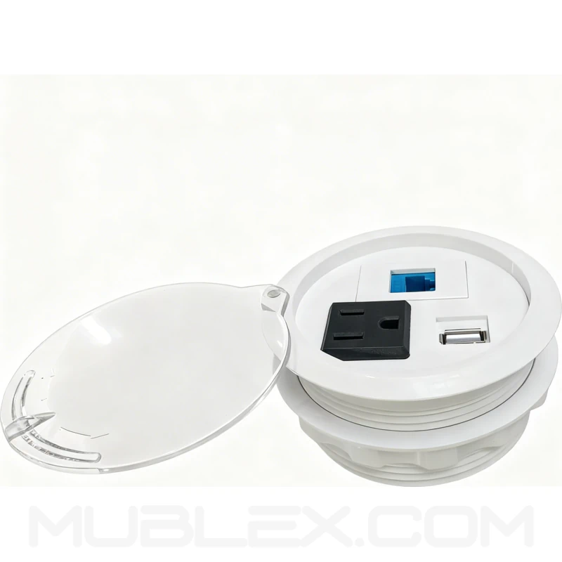 La multitoma redonda destaca como una solución práctica para proyectos de mobiliario corporativo que requieren integración de conectividad en espacios reducidos. Su sistema de instalación roscado facilita el montaje sin intervenciones complejas, mientras que su capacidad modular permite adaptarse a distintos requerimientos tecnológicos. Frente a soluciones tradicionales, ofrece una combinación eficiente de diseño compacto, resistencia estructural y funcionalidad, convirtiéndose en una alternativa versátil para optimizar superficies de trabajo.