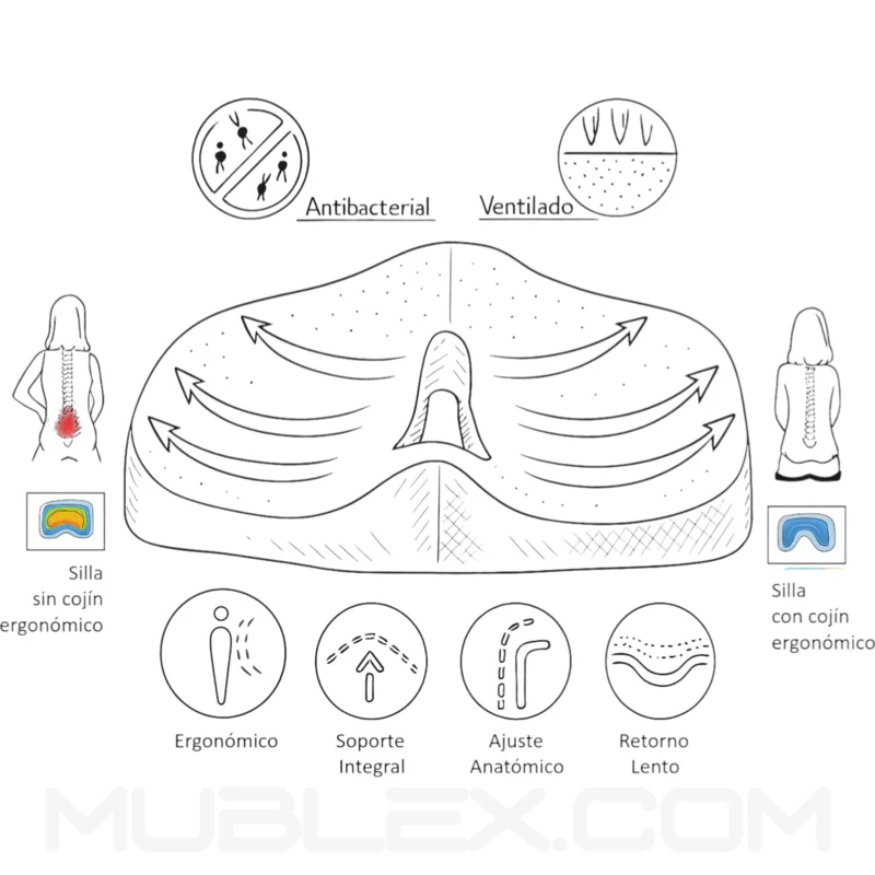 Ideal para aliviar la presión en el coxis y la zona lumbar, especialmente cuando se está sentado por periodos prolongados