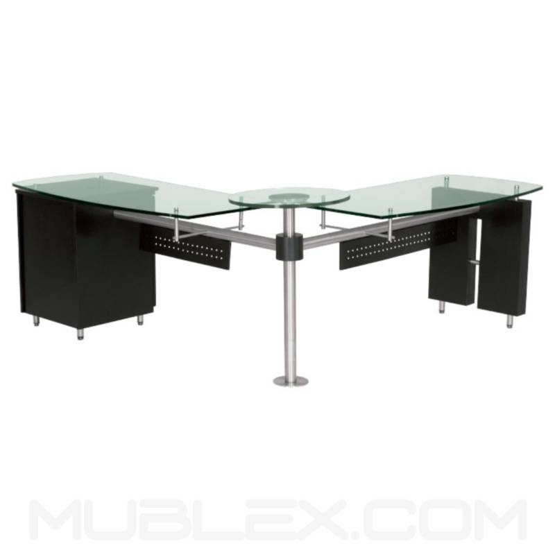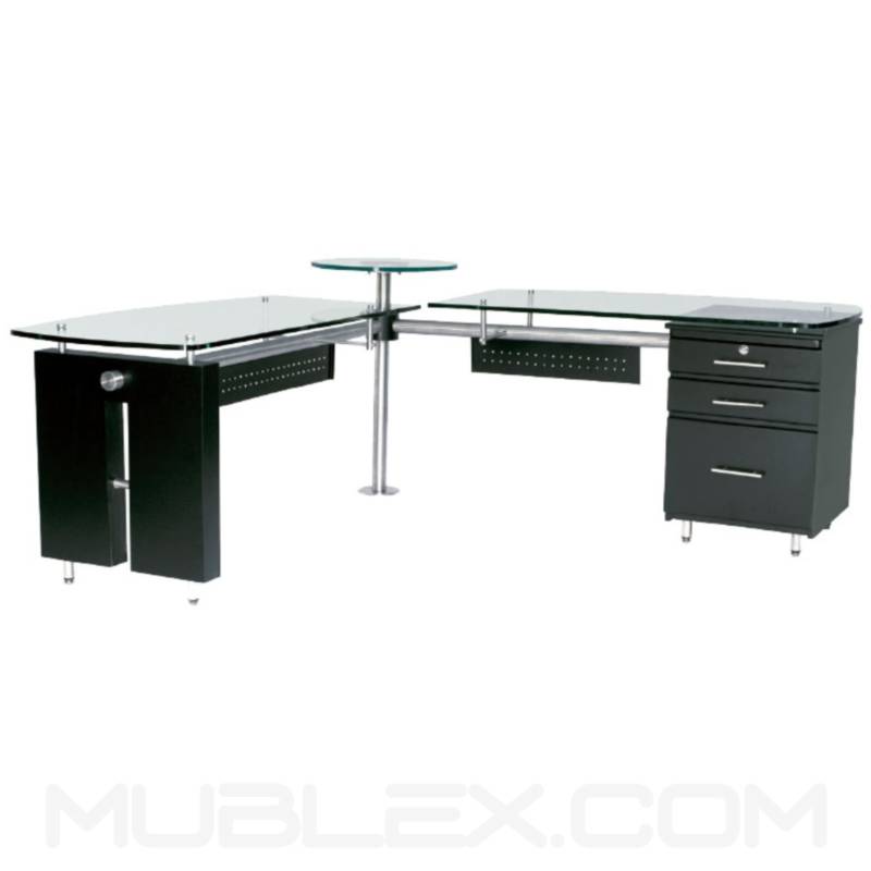 Escritorio en L 190×190 vidrio oscuro 19 mm con archivo