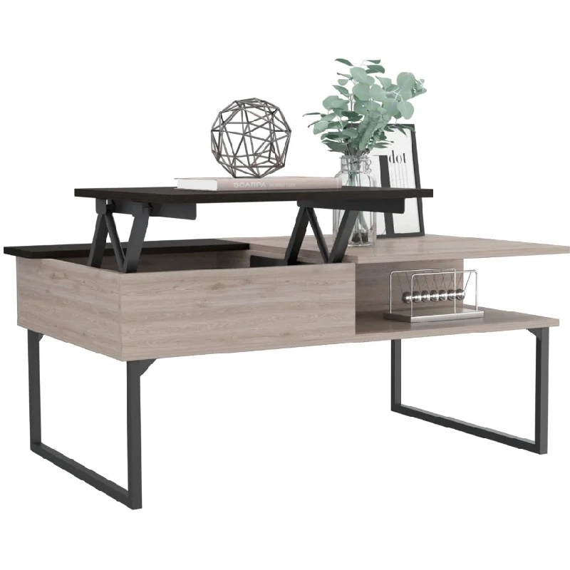 Mesa de Centro Extensible, con 1 cajón, 1 entrepaño, patas metálicas y espacio para objetos decorativos, libros, revistas y otros.