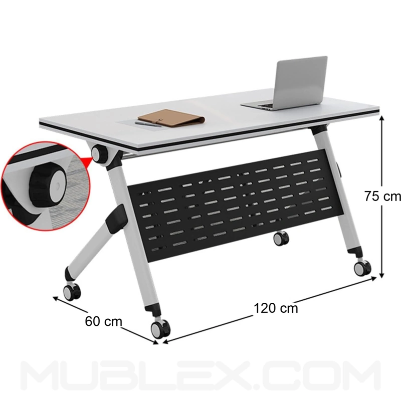 Con dimensiones de 120 x 60 x 75 cm, este escritorio proporciona una superficie amplia para trabajar, capacitar o realizar reuniones, soportando hasta 200 kg de peso de manera segura.