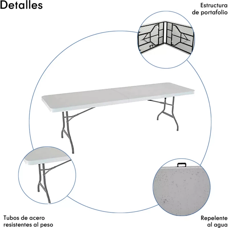 Mesa plegable Colette 180×74 cm tubo de 1”