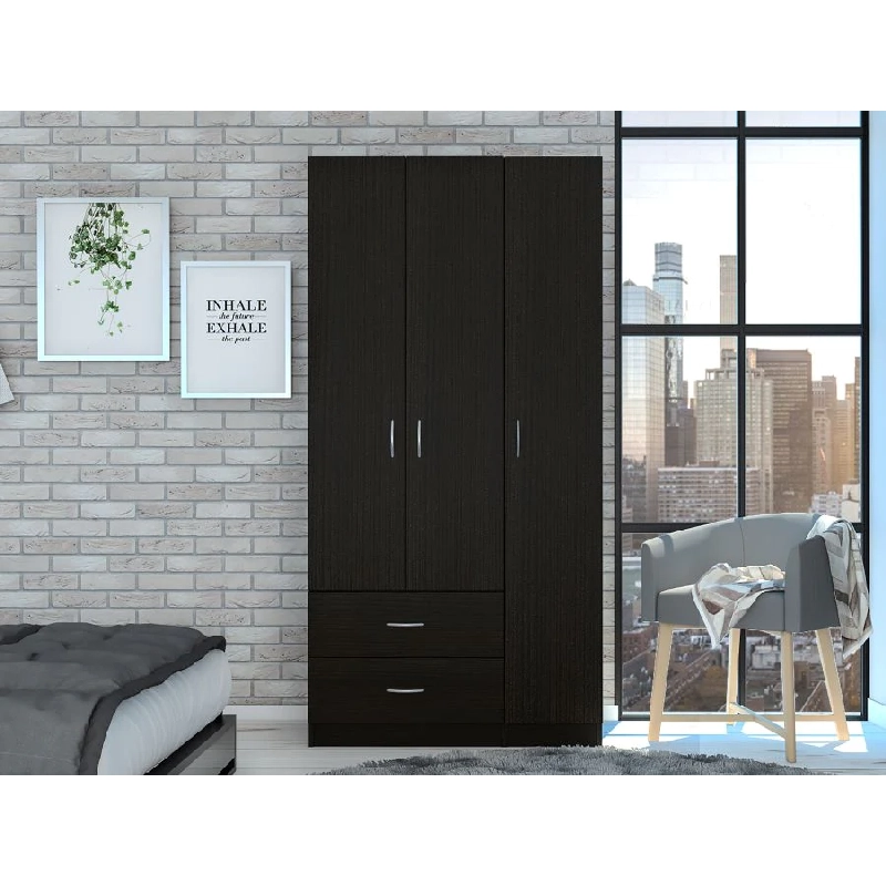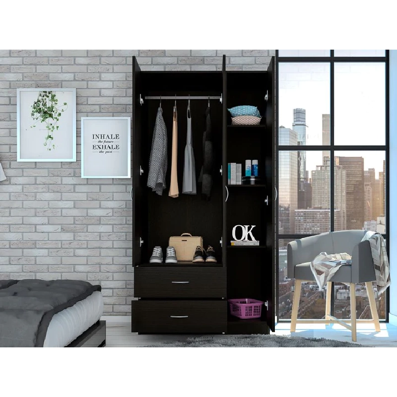 Closet armable América, con dos cajones y variedad de entrepaños, Wengue