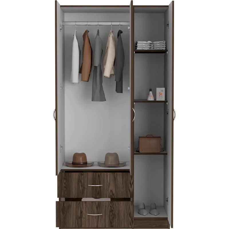Elaborado en Madera aglomerada MDP, recubierta con láminas melamínicas de excelente calidad, en color Chocolate y Blanco.