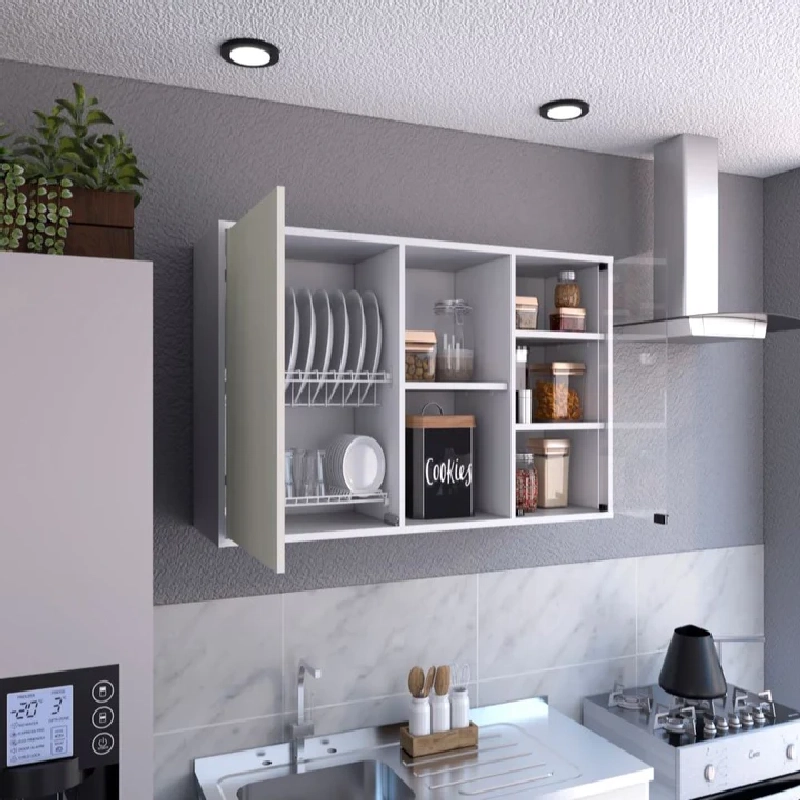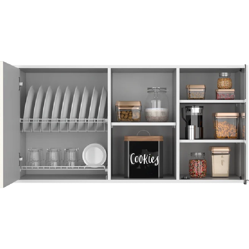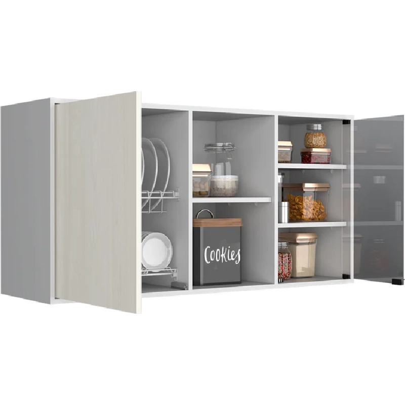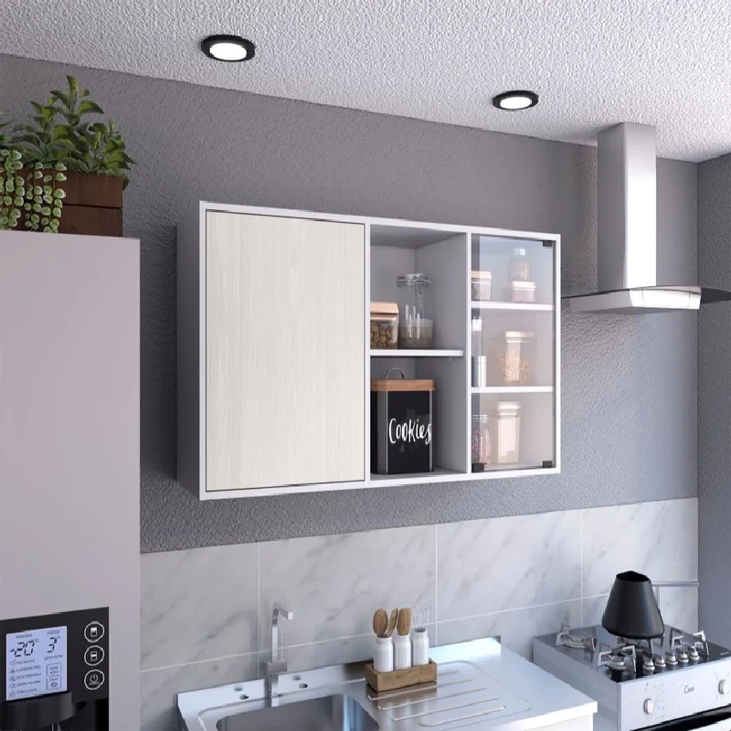 Gabinete Superior, con una puerta batiente, una puerta de vidrio y variedad de entrepaños.