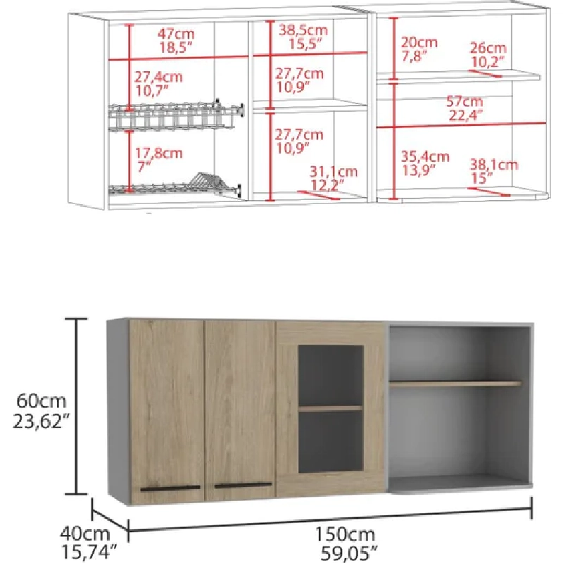 Elaborado en Madera aglomerada MDP, recubierta con láminas melamínicas de excelente calidad, en color Beige y Gris.