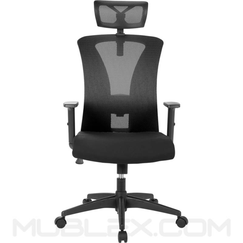 Altura de silla ajustable. Dureza de reclinación ajustable con perilla. Apoyo lumbar ajustable. Cabecera ajustable en altura y giro.
