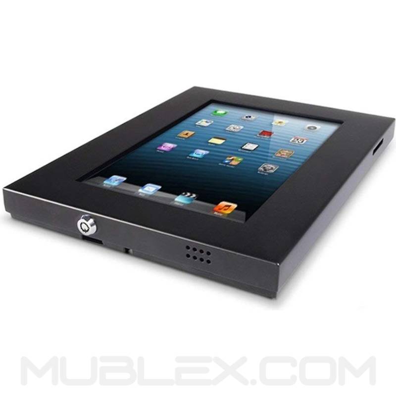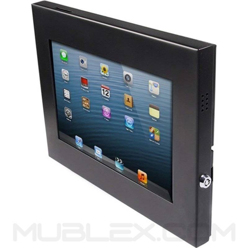Soporta iPad 2/3/4/Air. Para montaje directamente sobre una superficie o pared. Con llave para garantizar mayor seguridad.