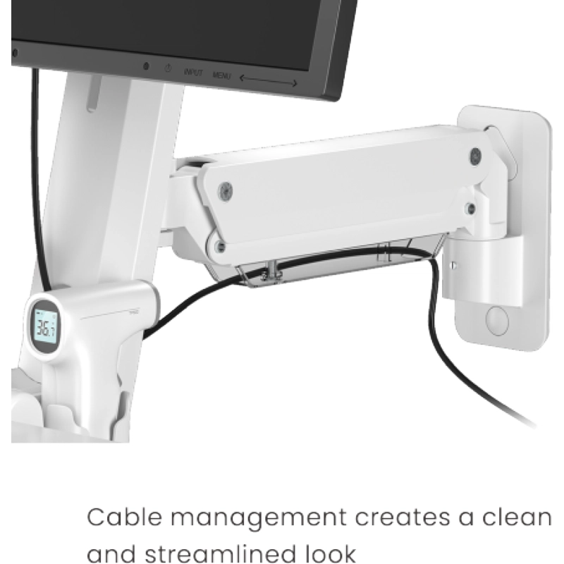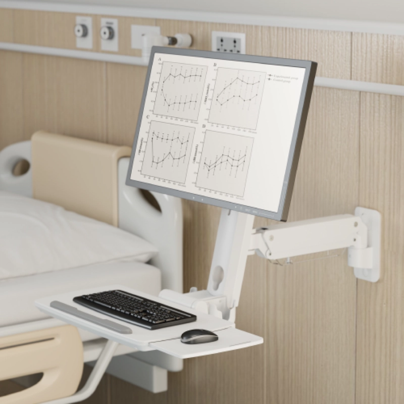 Las amplias superficies de las estaciones de trabajo incluyen una bandeja para teclado grande, una alfombrilla para mouse deslizante integrada y acceso al escáner en ambos lados, lo que permite la eficiencia en el trabajo.