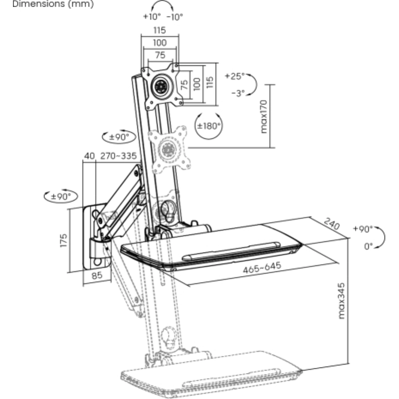 Bandeja de Teclado Plegable con tope: ahorra espacio cuando no está en uso.